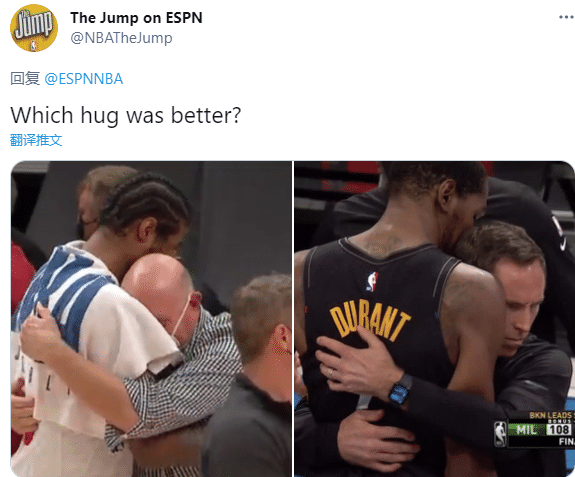 快船赢球后,大佬鲍尔默第一时间怒吼庆祝,然后他主动走到乔治身边,紧紧拥抱乔治,此时乔治咧嘴大笑;这一幕像极了此前杜兰特打满48分钟轰下49+17+10超级三双带队赢球,纳什深情拥抱杜兰特。