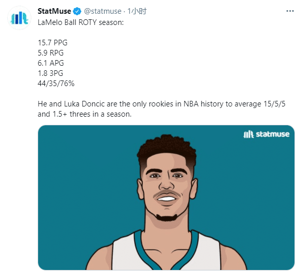 三球场均轰下15+5+5且至少投进1.5记三分,比肩东契奇成为NBA历史上第二位拿到如此数据的新秀;三球曾直言自己就是最佳新秀,如今他愿望成真,力压状元爱德华兹从而夺得最佳新秀,这次乔丹终于选对人了,恭喜三球,恭喜黄蜂和乔老板。