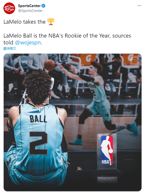 来源:JRS低调看直播06-17 10:47JRS低调看直播讯 北京时间6月17日,NBA又一大年度大奖出炉,据ESPN名记沃纳罗斯基报道,“三球”拉梅洛击败状元和国王新星荣获年度最佳新秀,美媒纷纷晒照恭喜三球获得最佳新秀。