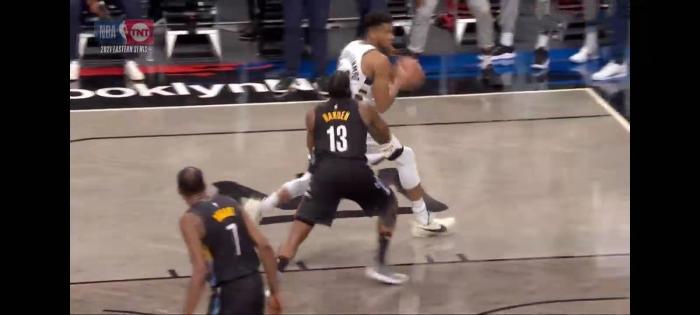 比赛来到最后1分多钟,字母哥在篮下接球强打哈登,按照道理来说,字母哥有优势,可是登哥却活生生给字母哥上了一课。