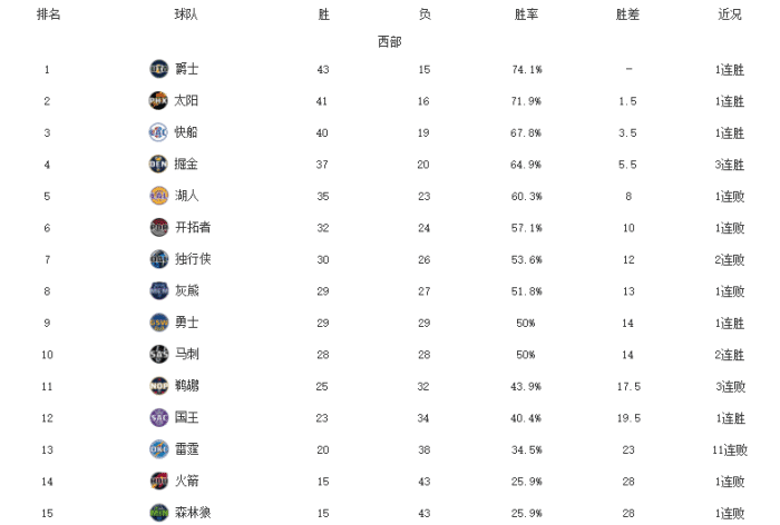 西部最新排名!爵士复仇湖人,太阳绝杀雄鹿,勇士掀翻东部第一