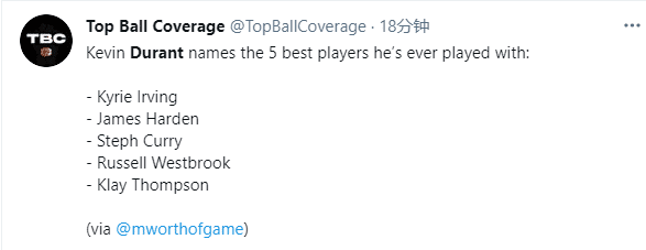 杜兰特列最强队友名单!欧文第1库里第3,KD忘记韦少临时更换排名