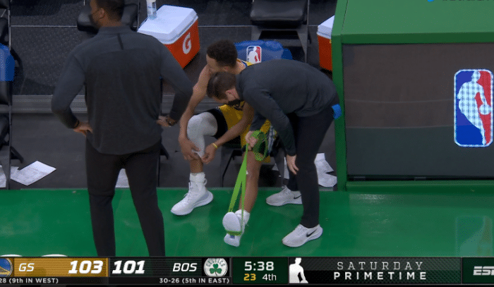 悍将缝针!带伤47+11记三分!输球后库里表情变化:沮丧后咧嘴大笑