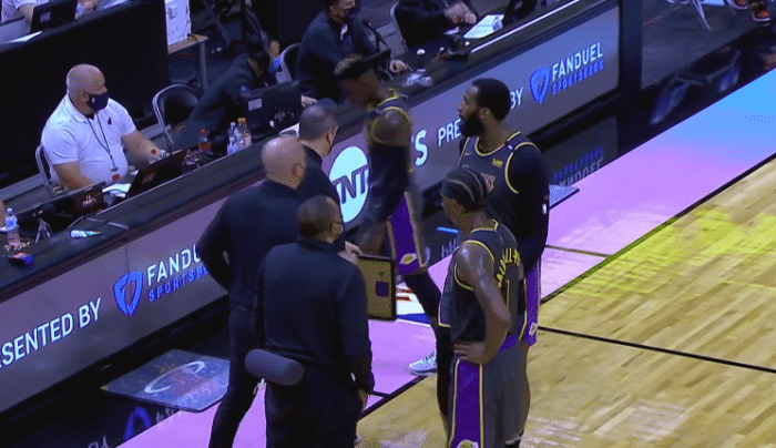 今天复出的德拉蒙德发挥十分不错,他前5投3中得到了6分并且有3助攻2抢断的数据,麦克勒莫通过罚球拿到了加盟湖人后的首分,首节比赛打完热火队32:27领先湖人5分,这一节的比赛湖人陷入到了犯规的麻烦,马修斯、德拉蒙德皆是2次犯规,在罚球数两队相差悬殊,湖人只有1次罚球,这次罚球是来自对手的防守三秒热火则是不断冲击内线造犯规,他们获得了18次罚球。首节的比赛发生了一个小插曲,德拉蒙德下场后直接回更衣室了,这也是让球迷十分的担心。
