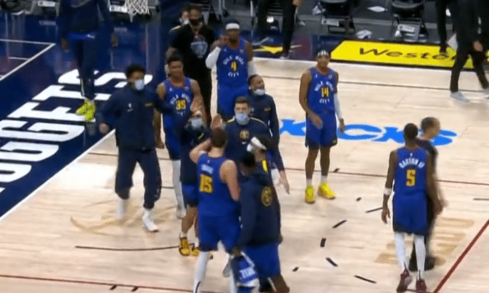 今天的比赛两队迎来了一场惨战,常规时间两队打成了109平,常规赛时间最后时刻,掘金当时落后独行侠2分,留给掘金的时间只剩下2.4秒,约基奇在底角位置接到球后,他迎着防守人完成了超高难度的撤步跳投,皮球稳稳进框,凭借着约基奇的绝平中投,掘金将比分拖入了加时,生死时刻约老师展现了超巨的水准。