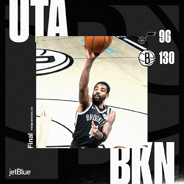 来源:JRS低调看直播01-06 10:59 JRS低调看直播讯:北京时间1月6日消息 NBA常规赛继续进行,篮网坐镇主场迎战爵士。此役杜兰特因防疫规定被隔离未能出战,欧文单核带队展现出极佳状态,他首节就轰下18分,带领篮网迅速打花爵士。最终篮网主场130-96轻松击败爵士,结束两连败的同时终结了对方的两连胜。