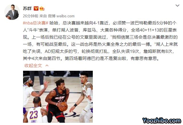 哈哈,总决赛越来越向4-1靠近,必须赞一波巴特勒最后5分钟的个人“斗牛”表演,单打湖人波普、库兹马、大莫各种得分,全场40+11+13的巨星表现。上一场后我已经在公号的文章里面说过,“我相信第三场会是总决赛最激烈的一场,有可能战至最后。这一战也将是热火集全身之力的最后一搏。”湖人上来就吃了失误、AD犯规太多的亏,轮换彻底打乱,全队失误19次,詹姆斯就有8次,其中4次来自第四节。第四场看阿德巴约是不是复出啦,有意思有意思。