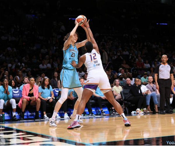 JRS低调看直播讯 8月1日讯 WNBA常规赛继续进行,韩旭所在的纽约自由人主场迎战菲尼克斯水星,常规赛进入后半程,自由人已经掉落至倒数第二位,季后赛形势不容乐观。开局自由人就抓住水星得分荒打出不错开局,随后双方进攻端接连犯错误,自由人凭借外线出色的手感保持住5分领先,次节双方命中率还是不高,陶乐西带领水星一度追平比分,自由人马上里突外投回应小高潮稳住局势,半场自由人领先到8分。第三节,阿伦找到外线手感,连续3记三分带领自由人一度拉开18分分差,但康宁汉姆马上站出来接连打成帮助水星重新缩至个位数分差,末节阿伦和约内斯库接连三分命中帮助自由人重新拉开分差,陶乐西带领水星追分,但自由人抓住机会又重新拉开20分以上的领先优势,最终自由人击退水星。