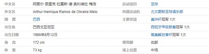 阿图尔·恩里克·拉莫斯·德·奥利维拉·梅洛(Arthur Henrique Ramos de Oliveira Melo),1996年8月12日出生于巴西戈亚尼亚,巴西职业足球运动员,司职中场,现效力于意大利足球甲级联赛的尤文图斯足球俱乐部。