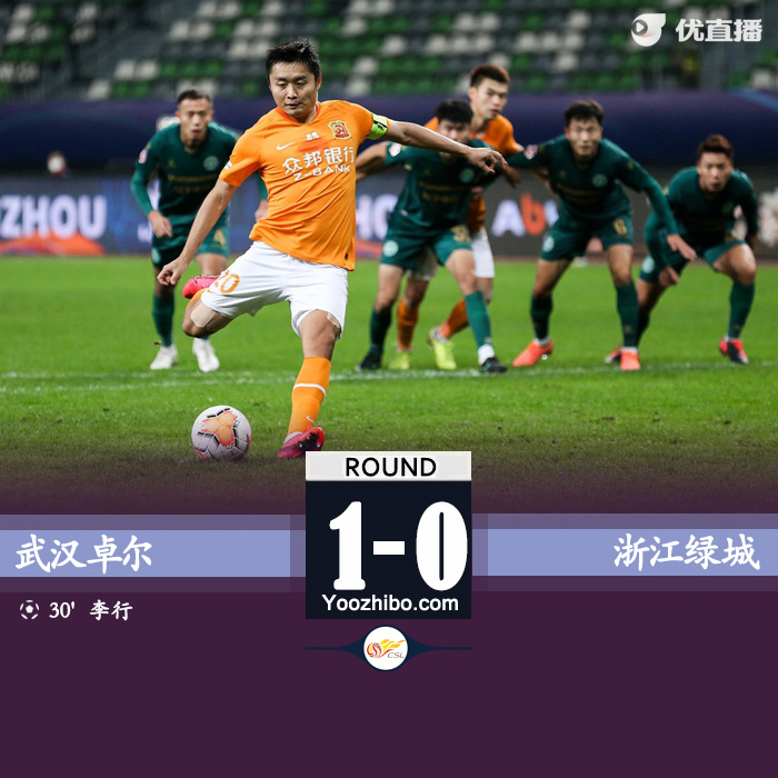 JRS低调看直播讯:北京时间11月22日晚间19:35,2020赛季中超升降级附加赛次回合,武汉卓尔对阵浙江能源绿城。上半场比赛龙成失误送点,李行点射率先破门。下半场双方都没有进球,最终卓尔1-0小胜绿城,总比分3-2战胜绿城保留中超资格。
