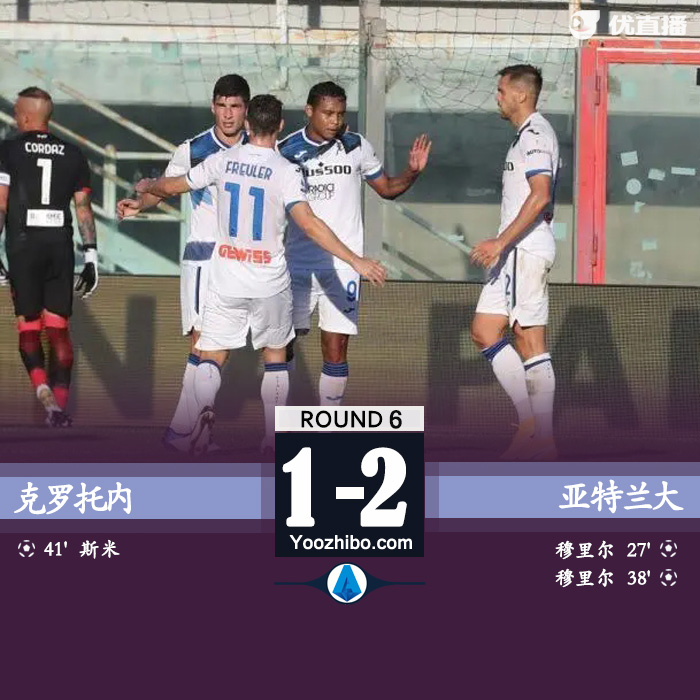 JRS低调看直播讯:北京时间10月31日晚至11月1日凌晨,2020-2021赛季欧洲五大联赛最新一轮比赛展开争夺。其中,克罗托内主场迎战亚特兰大,穆里尔梅开二度,亚特兰大2-1客胜克罗托内结束2连败。