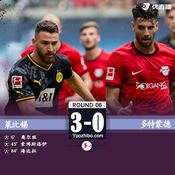 来源:JRS低调看直播09-11 01:21 JRS低调看直播讯:北京时间9月10日,德甲第6轮比赛,RB莱比锡主场对阵多特蒙德,这是前多特主帅罗泽执教莱比锡的首秀。上半场,刚开场奥尔班就在角球机会中头球破门,随后主场做战的莱比锡多次制造进攻机会,维尔纳也是因为越位错失一次单刀,索博斯洛伊世界波;下半场,双方都没有太多好机会,直到最后时刻海达拉破门,最终莱比锡3-0多特。
