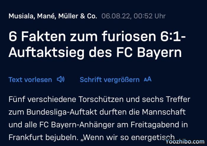 JRS低调看直播08月06日讯 今日,拜仁在德甲首轮作客6-1大胜法兰克福,拜仁官网也统计了多项相关数据: