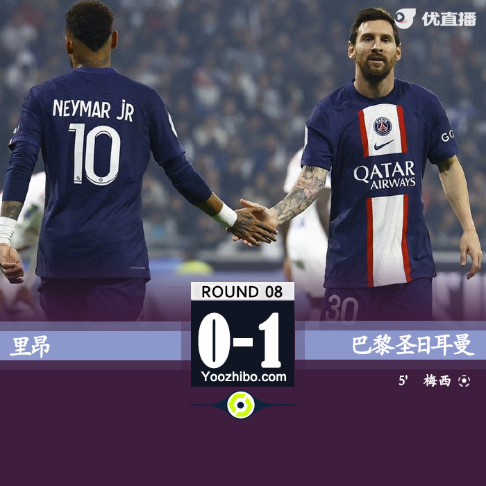 第5分钟,梅西与内马尔在对方禁区前打出配合,内马尔在接到梅西传球后,横向盘带后将球传回给梅西,后者顺势左脚推射得手,巴黎1-0里昂。