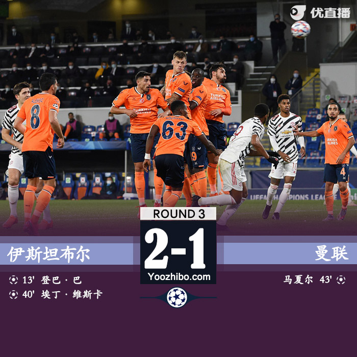 JRS低调看直播讯:北京时间11月5日01:55(土耳其当地时间4日20:55),2020/21赛季欧冠H组第三比赛日一场焦点战展开争夺,曼联客场1比2不敌伊斯坦布尔,登巴巴和维斯卡进球,马夏尔扳回一城。曼联下半场围攻未能打破僵局,红魔小组连胜被终结。