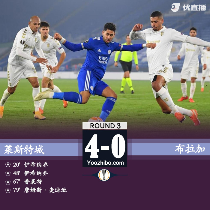 JRS低调看直播讯:北京时间11月6日凌晨,欧联杯小组赛第3轮展开争夺。在本轮莱斯特城队在主场作战,他们的对手是布拉加队。两支球队在前两轮小组赛都取得了两连胜的战绩,本场比赛是一场事关小组头名的争夺战。