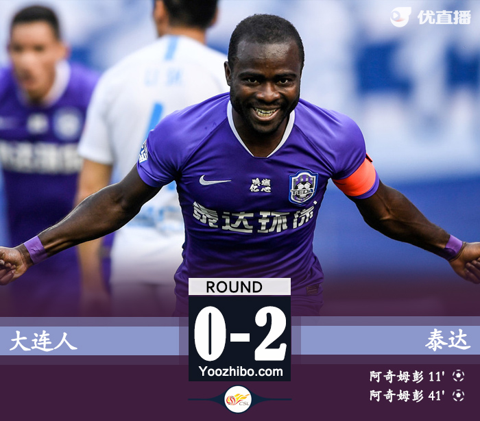 JRS低调看直播讯:北京时间10月26日下午15:30,中超第二阶段保级组第2轮、9-12名排位赛首回合打响,大连人对阵天津泰达。上半场,张翀出击失误,阿奇姆彭梅开二度,博阿滕破门被吹越位;下半场,双方互有攻守,没有进球产生。最终,天津泰达2-0大连人,迎来两连胜。