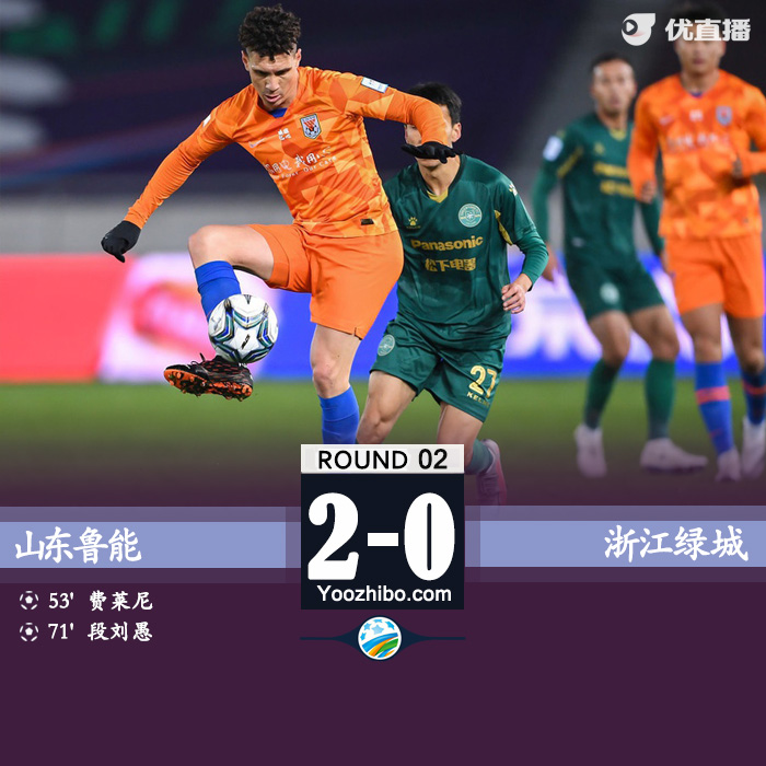 JRS低调看直播讯:11月29日晚,2020年中国足协杯第二轮继续进行,山东鲁能2-0淘汰浙江绿城,成功晋级八强,接下来他们将对阵广州富力。第53分钟,蒿俊闵角球传中,格德斯头球摆渡,费莱尼头球接力破僵局。第70分钟,蒿俊闵直塞,吴兴涵边路传中,段刘愚两连击破门。