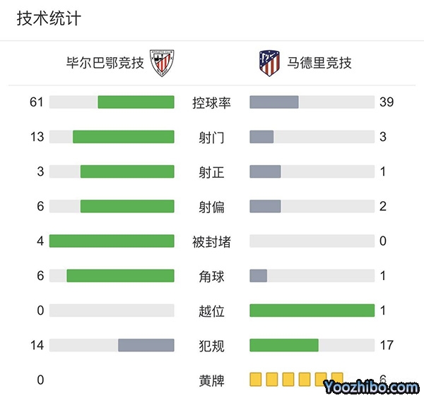 全场结束,马德里竞技1-0毕尔巴鄂竞技。