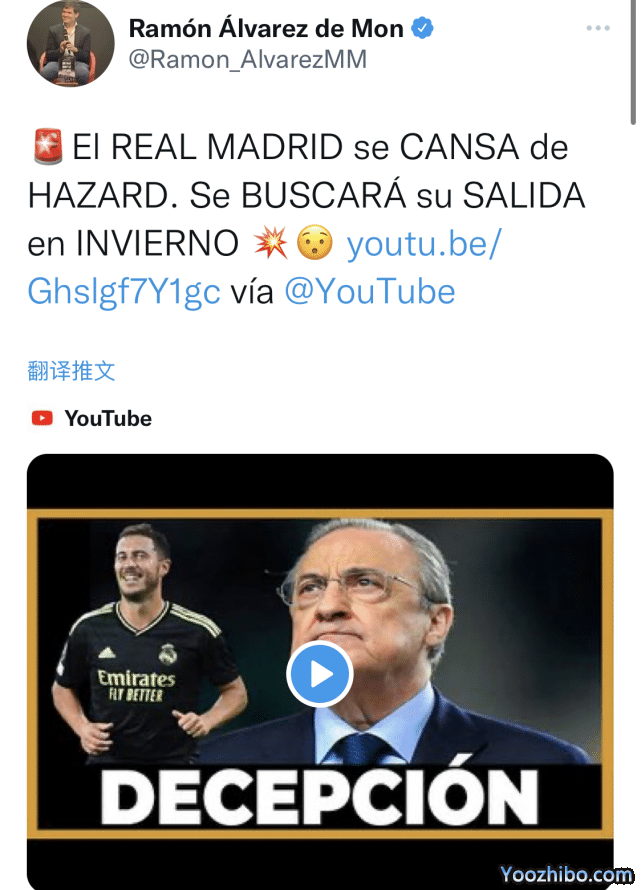 不仅是球迷,皇马高层也对于阿扎尔十分失望。该名记透露:“皇马的领导层对阿扎尔非常失望,昨天的表现也让高层失望。”皇马已经厌倦了阿扎尔,考虑冬窗为球员寻下家。此前,皇马曾在3个转会窗都考虑用不同的方式让比利时人离队。然而,阿扎尔一直优先考虑留在皇马。不知道冬窗,皇马是否能如愿送走这位队史最大的水货之一。