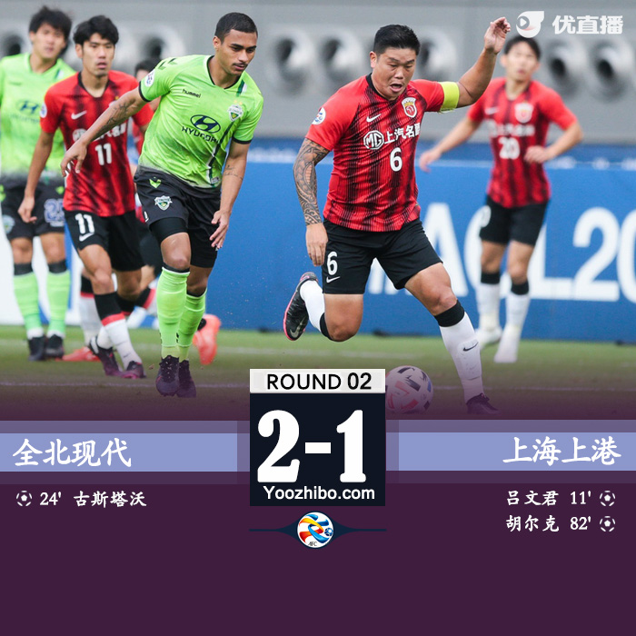 JRS低调看直播讯:北京时间11月22日晚9点,2020年亚冠联赛小组赛H组全北现代和上港上港的比赛,在卡塔尔哈里发国际体育场开始。第11分钟陈威球门球开到对方前场,辛炯旼判断落点失误,吕文君拿球突击到禁区推射远角得分。第23分钟曹圭成在右路把球传出,金甫炅低平球送入禁区,古斯塔沃抢先捅射扳平比分。半场两队1比1踢平。第80分钟胡尔克后场长传,奥斯卡迎球杀入禁区,洪正好禁区内踢倒奥斯卡被罚点球,胡尔克左脚怒射球门右上角得分。最终上海上港2比1战胜全北现代,赢得本季亚冠小组赛两连胜。