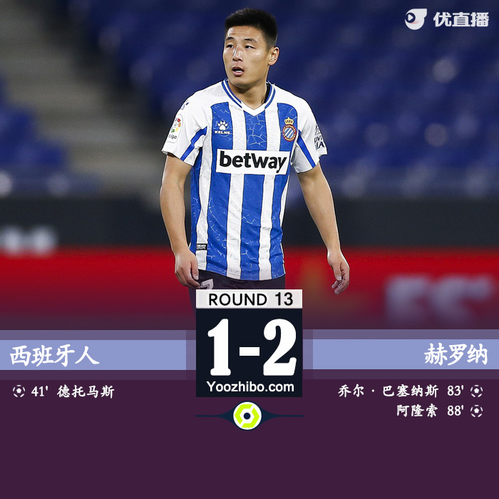 JRS低调看直播讯:北京时间11月21日4时(西班牙当地时间20日21时),西乙第13轮开始1场较量,西班牙人主场遭逆转1比2负于赫罗纳,遭遇本赛季第2场败绩,也是主场首负。武磊连续4轮担任替补,第80分钟替补出场。德托马斯连续5轮破门。终场前,赫罗纳连下两城反超。