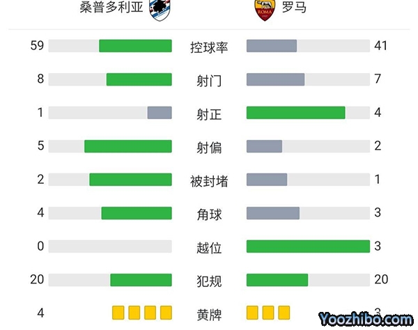 全场结束,罗马1-0战胜桑普多利亚。