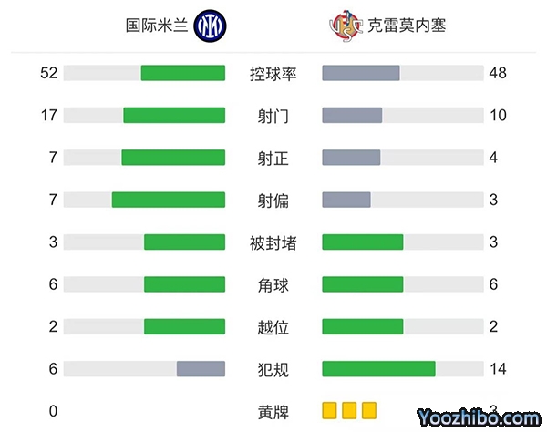 全场比赛结束,国际米兰3-1克雷莫纳!