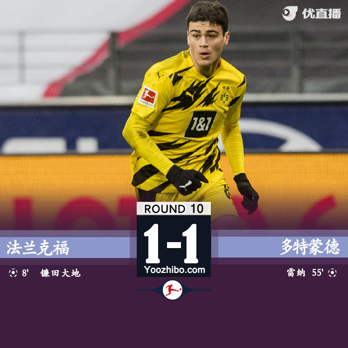 JRS低调看直播讯:北京时间12月5日22:30,2020-21赛季德甲联赛第10轮,法兰克福主场迎战多特蒙德。上半时辛特雷格助攻镰田大地破门,桑乔错失良机。下半时雷纳扳平比分,穆科科替补出场没能把握住机会。最终,法兰克福1-1多特蒙德,法兰克福联赛五连平,多特两轮联赛不胜。