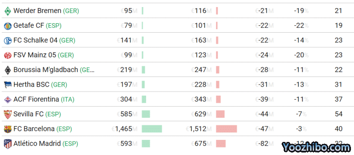 皇马是西甲中最奢侈的球队,引进19名球员花了8.33亿欧元,其估值为6.85亿欧元,多花了1.48亿欧元,这一金额如果放在英超,只能排名第三。
