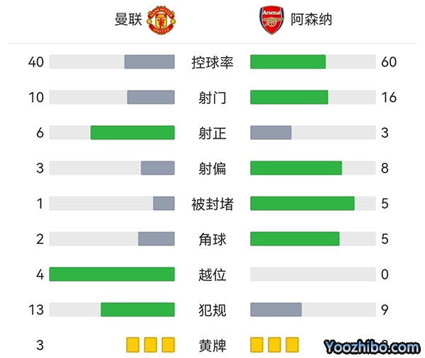 全场比赛结束,曼联主场3-1战胜阿森纳。