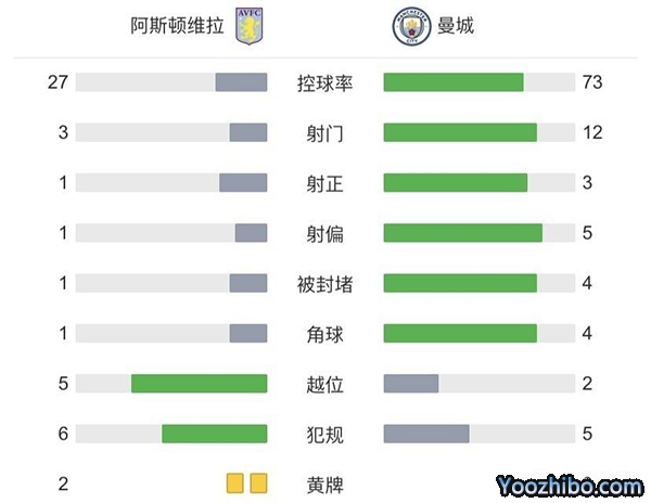 第74分钟,雅各布-拉姆塞左路突破横传,莱昂-贝利包抄推射破门,维拉1-1曼城。