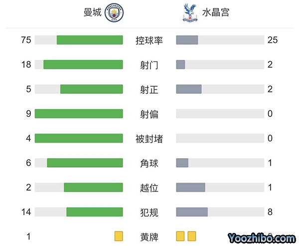 全场比赛结束,曼城4-2逆转战胜水晶宫。