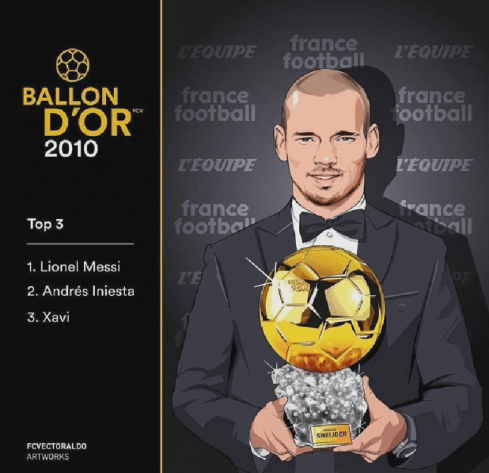 10年的时候,斯内德的表现绝对是现象级的,在国米他以核心球员的身份帮助球队拿到了“三冠王”,在国家队以核心的身份带领荷兰队进入世界杯决赛,但是就是这样的表现,也无法让斯内德斩获金球技,当然无缘金球奖就算了,连前三都进不了,这一届金球奖真的难以服众。