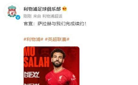 利物浦官博宣布萨拉赫完成续约,不过随后官博删除了微博。