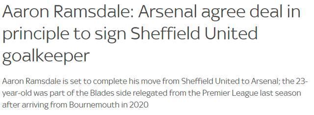 23岁的拉姆斯代尔是阿尔特塔今夏在门将位置上的头号引援目标,谢菲联起初索要4000万英镑转会费,但经过周旋,阿森纳最终以2400万英镑+600万英镑浮动的价格谈妥了这笔交易。