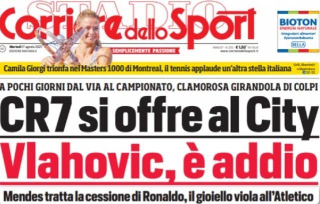 JRS低调看直播08月17日讯 据《罗马体育报》头版消息,C罗已经把自己推荐至曼城,门德斯正在运作这笔交易,而C罗的代表已经飞往英格兰进行交涉。