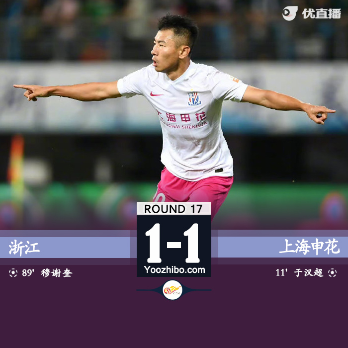 JRS低调看直播9月10日讯 北京时间9月10日19:30,中超第17轮,浙江队迎战上海申花。上半场,吴曦助攻于汉超先下一城,浙江队屡失良机!下半场,曹赟定送点,穆谢奎主罚命中扳平比分!全场比赛结束,浙江队1-1上海申花!