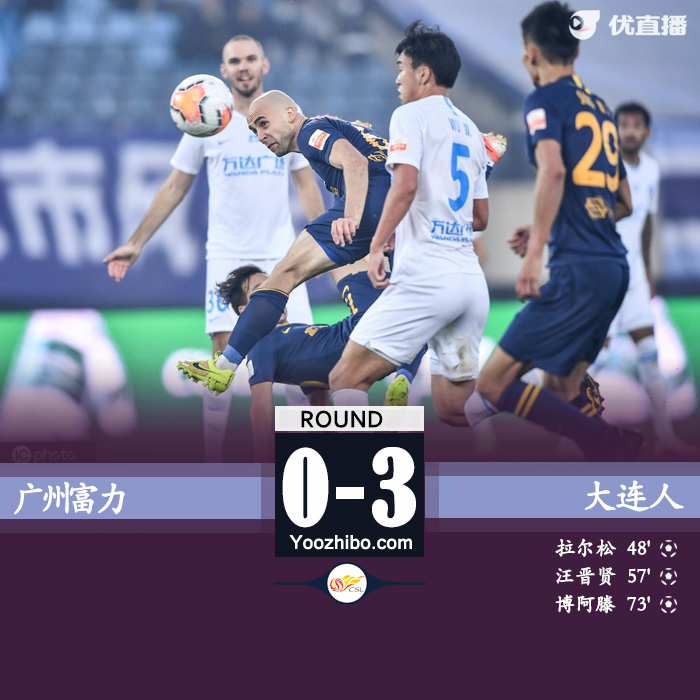 JRS低调看直播讯:北京时间11月6日15点30分,2020赛季中超联赛进入第19轮争夺。在大连体育中心体育场,广州富力队与大连人队展开第11-12名排位赛首回合争夺。经过90分钟激烈对垒,大连人队依靠拉尔森的一射两传3-0击败广州富力队,上半场拉尔森还有一脚任意球射门击中横梁弹出,不过由于累积四张黄牌,拉尔森次回合将要停赛,汪晋贤一传一射,博阿滕则轰进一记世界波。
